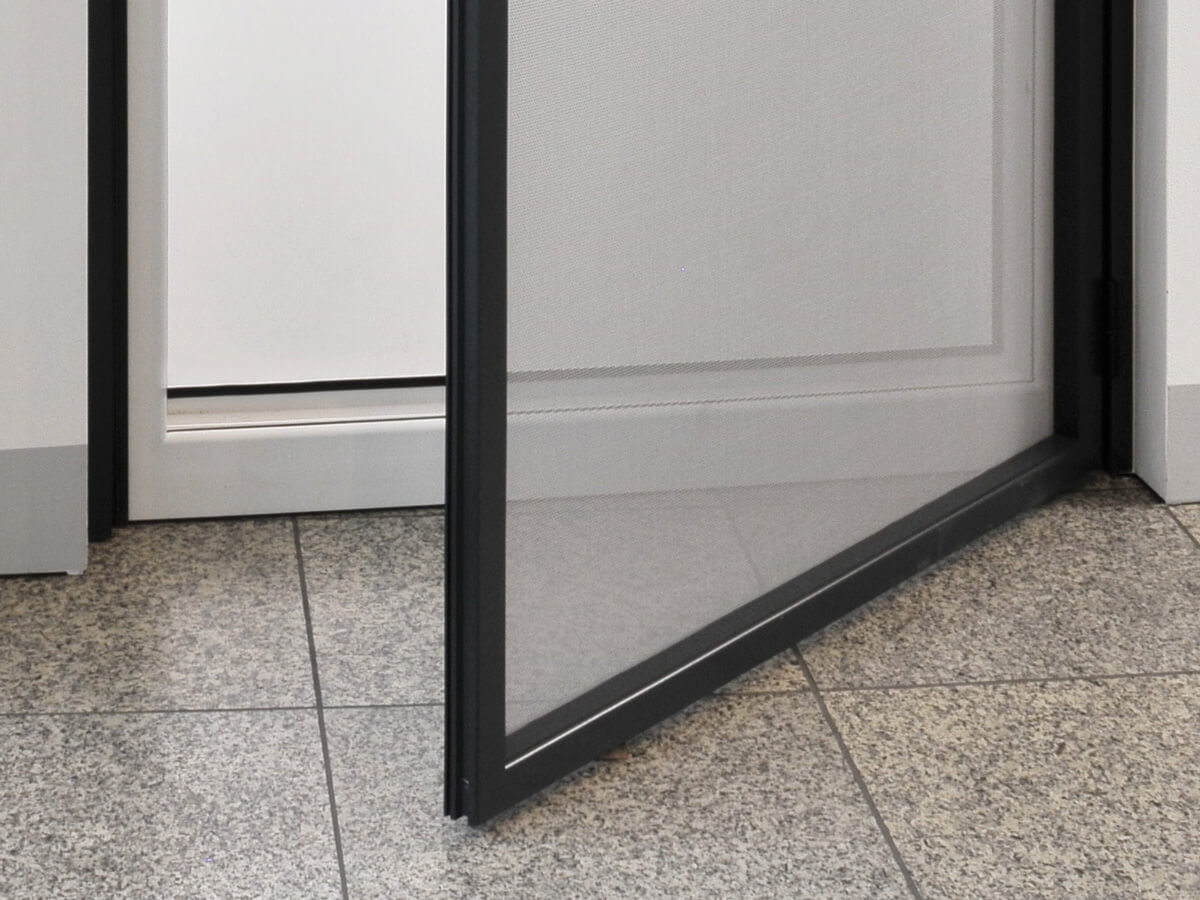 Insektenschutz-Pendeltüren sind vor allem an Terrassen- und Balkontüren besonders komfortabel. Mit Hilfe der Federschließer und Magnetzuhaltung wird ein selbstständiges Schließen und somit stetiger Insektenschutz ermöglicht.
